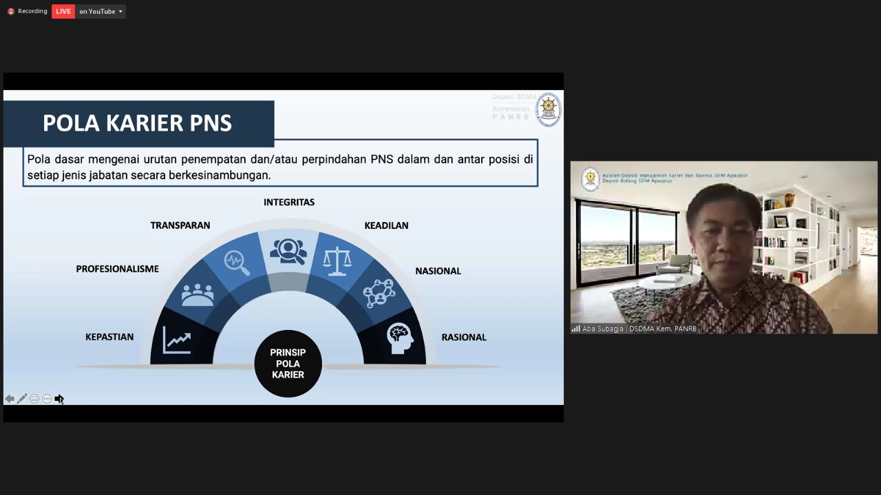 “Kalau pola kariernya jelas maka bisa memberikan ruang seseorang merencanakan sistem kariernya. Jadi dia tahu betul kariernya ke arah mana,” ujar Aba dalam rakor yang dihadiri oleh Sesmen/Sekjen/Sestama Kementerian dan Lembaga serta Sekretaris Daerah Provinsi ini.