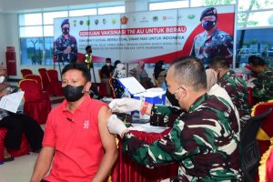 Dalam hal ini, TNI AU melaksanakan serbuan vaksinasi tahap satu di Bandar Udara Kalimarau, guna mensukseskan program pemerintah untuk mempercepat capaian herd immunity atau kekebalan kolektif di Kabupaten Berau, Kalimantan Timur, Rabu (08/09/2021).