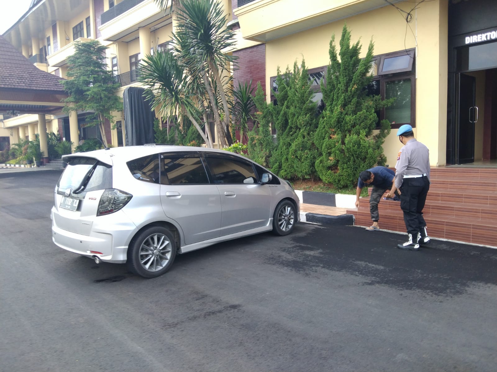 Provos Bidpropam Polda Banten menindak tegas Anggota Polda Banten yang memarkirkan mobilnya di halaman Polda Banten. Rabu (22/09).