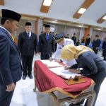 Wali Kota Tangerang Arief R. Wismansyah bersama dengan CEO Regional Bank BJB Kantor Wilayah IV Edy Kurniawan Saputra, Ketua KONI Kota Tangerang Hadi Rusman melepas sekaligus memberikan arahan kepada para atlet yang akan bertanding dalam ajang Pekan Olahraga Nasional (PON) ke XX Tahun 2021 di Papua. Bertempat di Ruang Ahlakul Karimah Pusat Pemerintahan Kota Tangerang, Senin (20/9/2021).