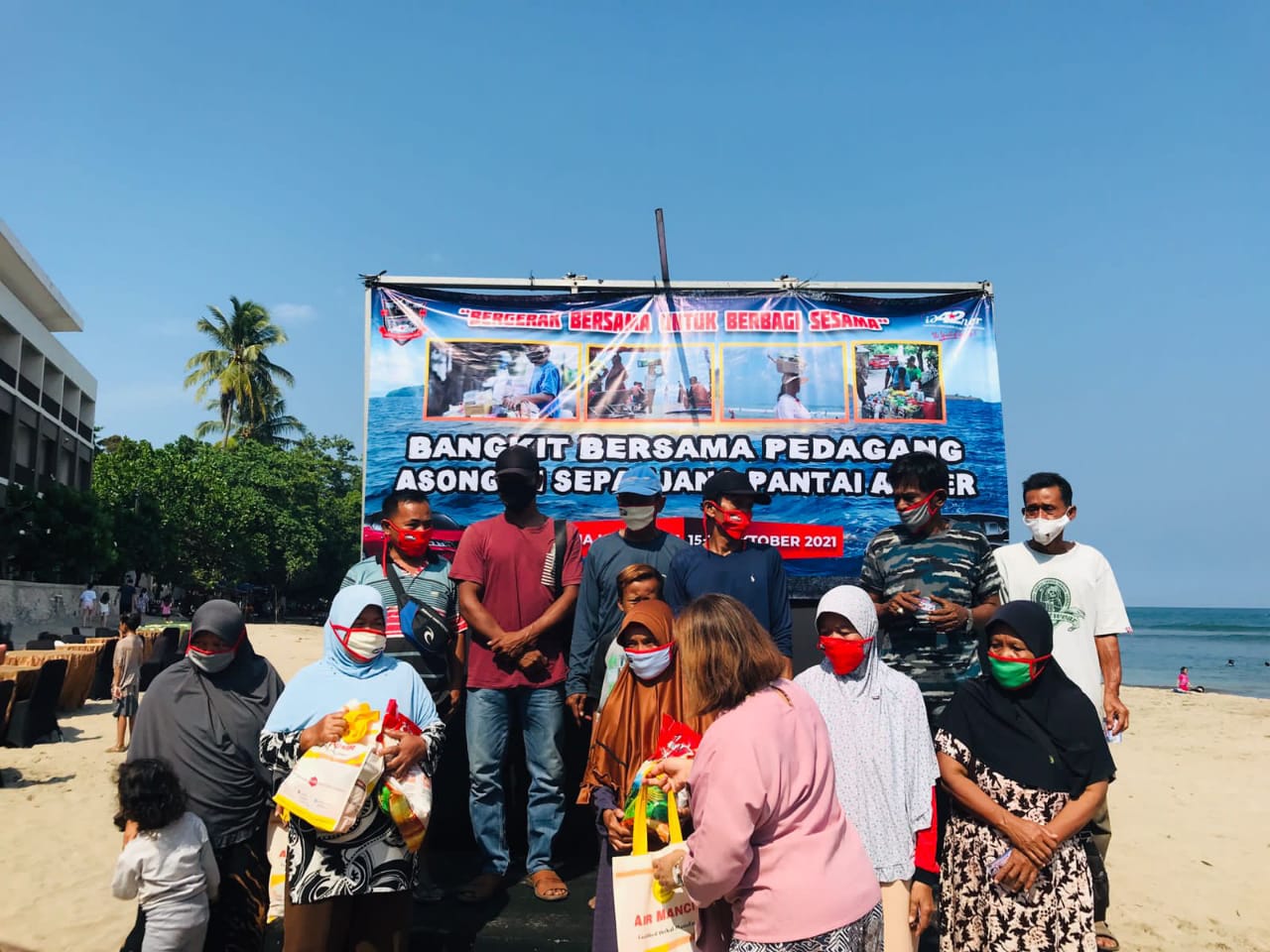 ANYER (suarasiber.co.id) – Mengajak “Bangkit Bersama Pedagang Asongan Sepanjang Pantai Anyer” Management Hotel Pesona Krakatau Beach Anyer mengandeng Club Id Fortuner Tangerang Raya, berbagi sembako kepada para pedagang pantai. Sabtu, 16/10/2021.
