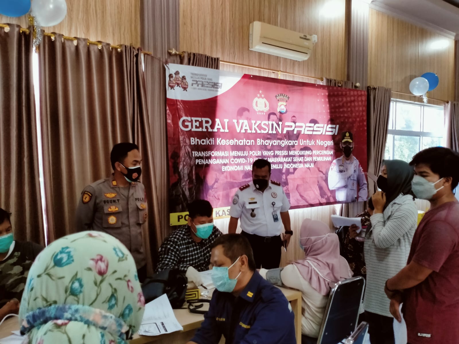 AKP Ugum Taryana S.H mengungkapkan dalam proses Vaksinasi Covid19 tersebut masyarakat yang akan menerima Vaksin Covid19 harus melewati serangkaian pemeriksaan kondisi kesehatan dari petugas kesehatan yang ada di lokasi.