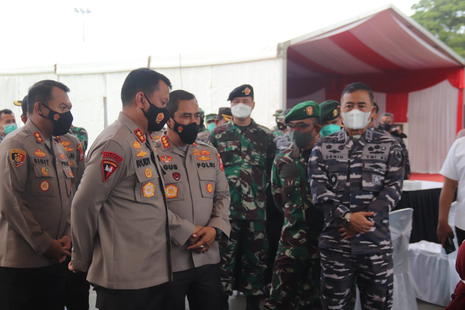 Kapolda Banten bersama Danrem 064/MY dan Gubenur Banten mendampingi kegiatan Alumni Akabri 89 bakti sosial vaksinasi dan pemberian paket sembako kepada masyarakat yang terdampak pandemi Covid-19.