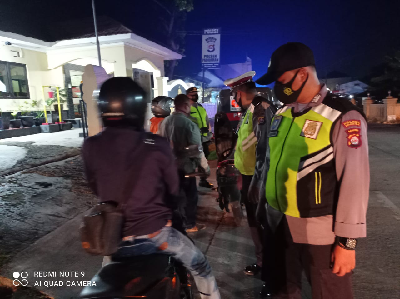 Personil Polsek Pabuaran Polres Serang kota Polda Banten melaksanakan giat operasi cipta kondisi depan mako kampung kadaung desa kadubereum kecamatan pabuaran, selasa dini hari (26/10/2021).