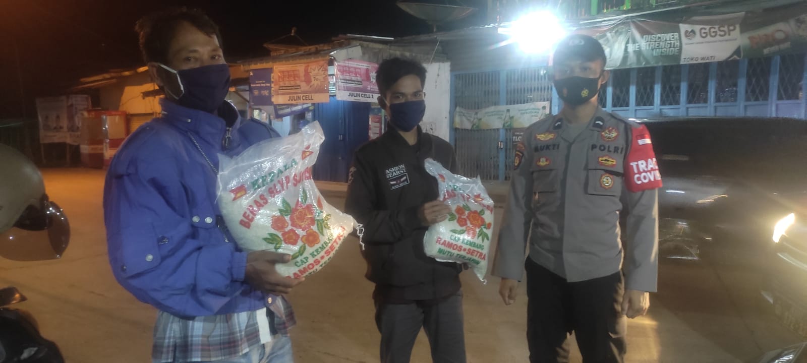kegiatan pembagian bantuan sosial di Pimpin Ka Spk Bripka Lukman dan Bripda Mukti.