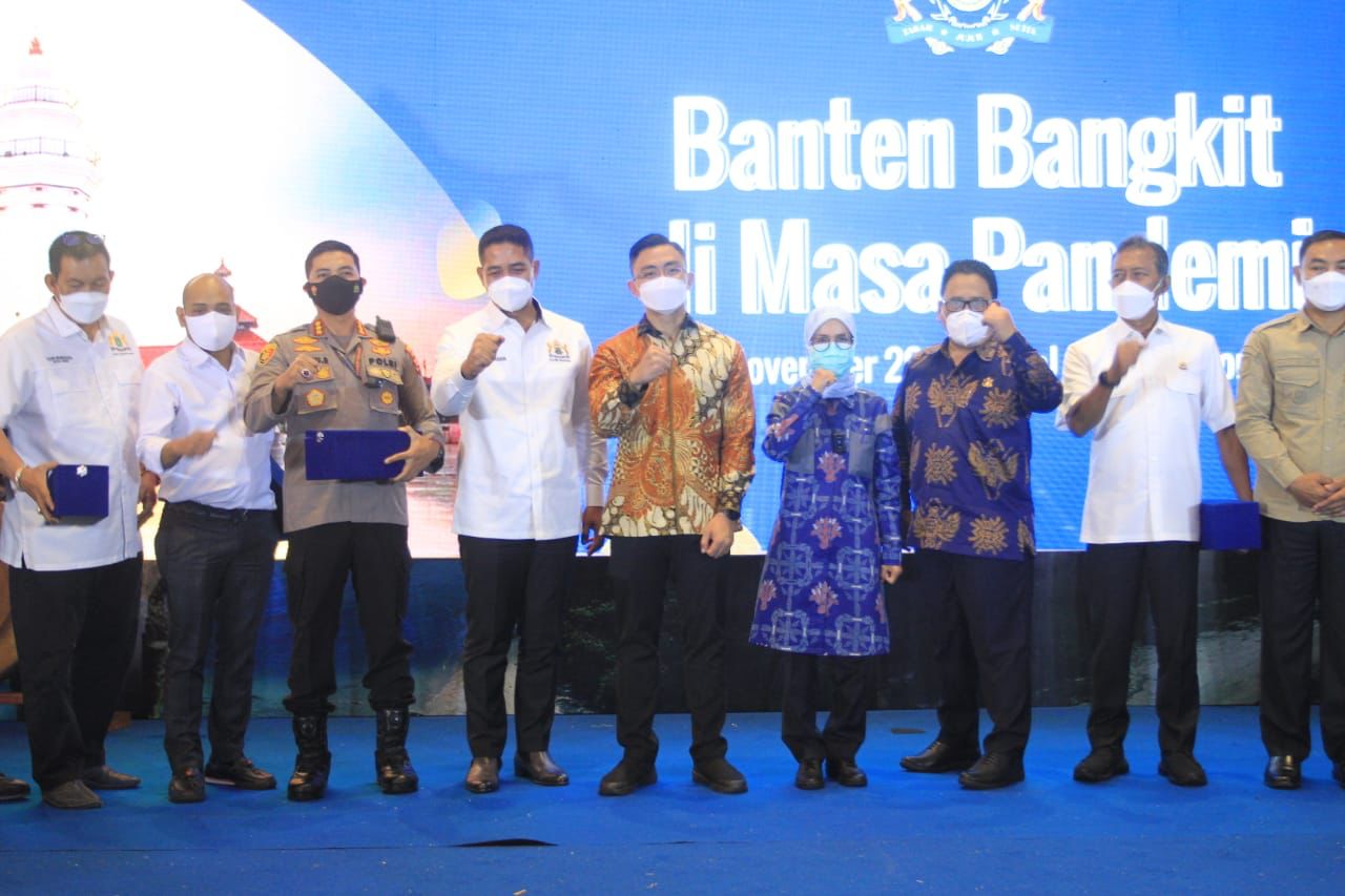 SERPONG (suarasiber.co.id) – Wakil Gubernur Banten Andika Hazrumy secara resmi membuka Musyawarah Provinsi ke 6 Kadin (Kamar Dagang dan Industri) Banten di Hotel Atria Gading Serpong, Kabupaten Tangerang, Senin (22/11). Dalam sambutannya, Andika mengingatkan Kadin Banten agar membantu fokus Pemprov Banten saat ini terkait pemulihan ekonomi di masa pandemi Covid 19.