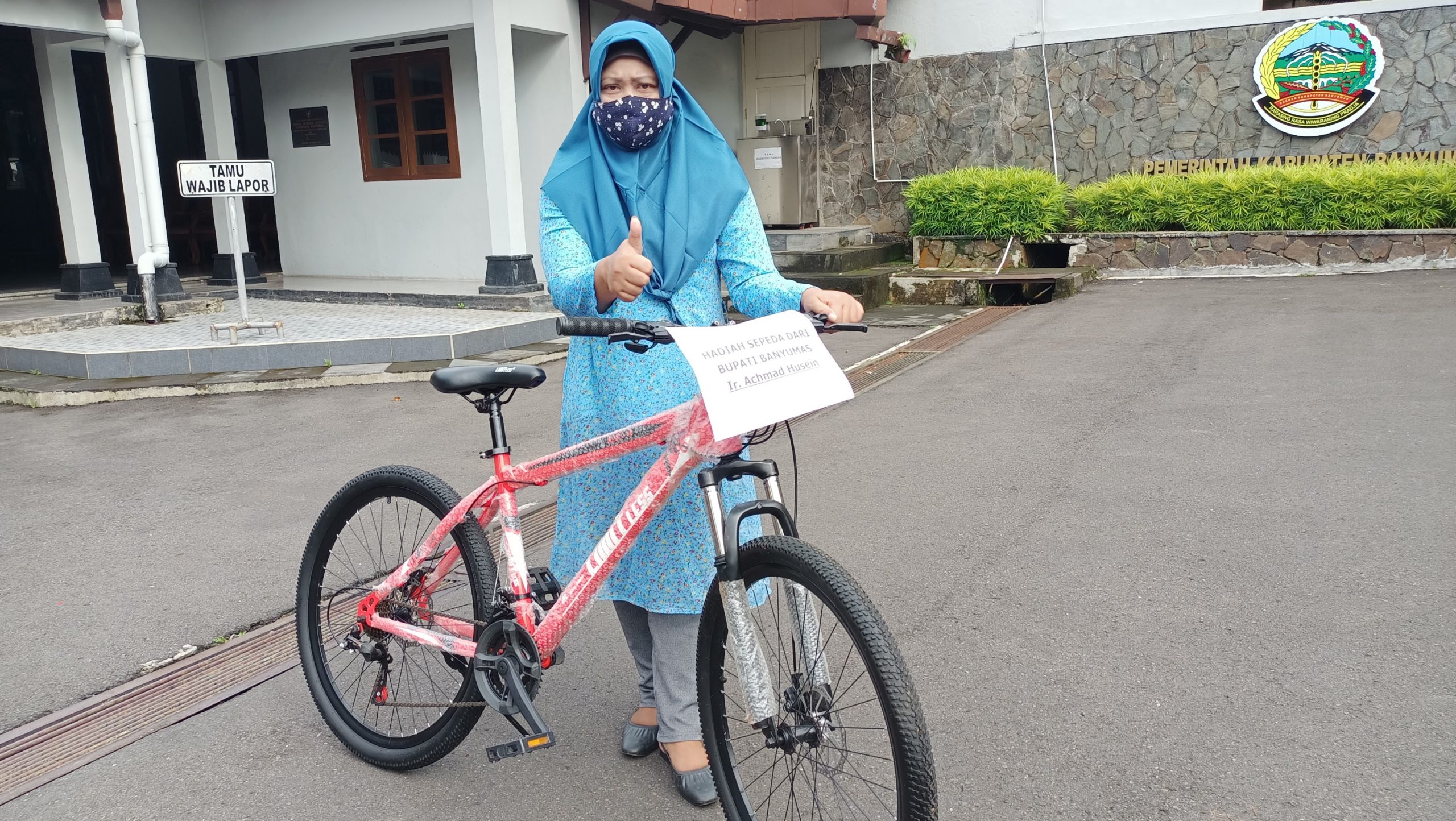 Saat mengambil sepeda Selasa (16/11/2021) pagi di Pendopo Sipanji, Retno Nur Diana baru yakin ia mendapatkan hadiah sepeda. Ia mengaku senang ketika sebuah sepeda dari Bupati Banyumas, Achmad Husein benar benar ia terima.