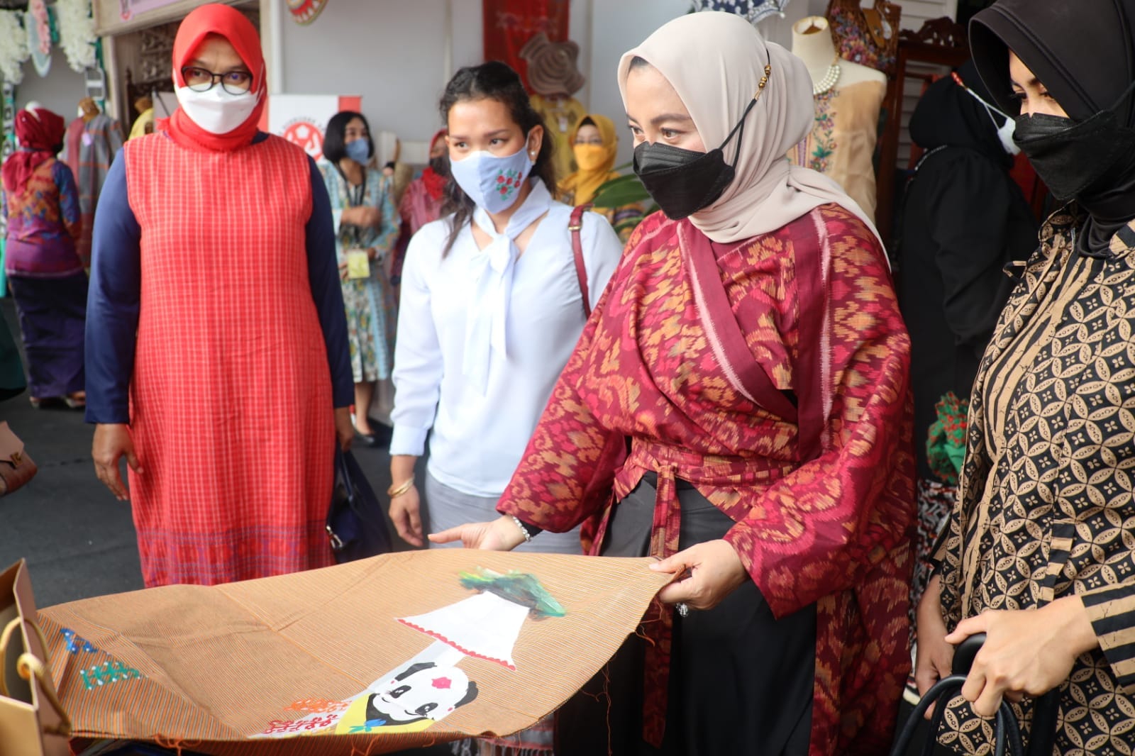 Untuk semarakkan kegiatan tersebut, Ketua Bhayangkari Daerah Banten Ny. Wie Rudy Heriyanto turut berpartisipasi dalam Gebyar Karya Pertiwi.