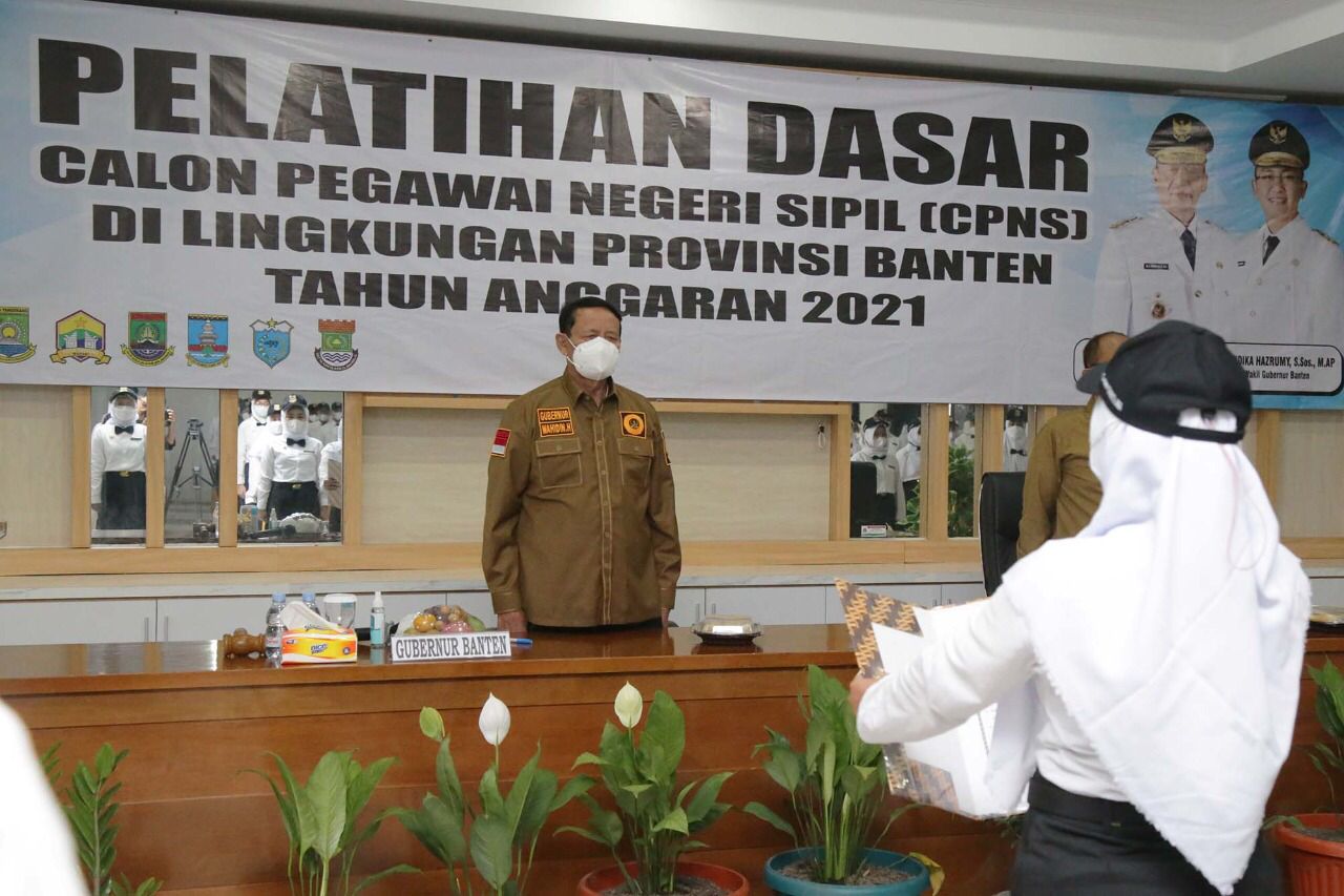 “Sumpah yang ikrarkan seorang PNS adalah taat dan loyal kepada negara (NKRI, red) dan Pancasila,” ungkap Gubernur WH saat memberikan pengarahan pada Pelatihan Dasar Calon Pegawai Negeri Sipil (CPNS) di Lingkungan Provinsi Banten Tahun Anggaran 2021 di Badan Pengembangan Sumber Daya Manusia (BPSDM) Provinsi Banten Jl. AMD Lintas Timur, Karang Tanjung, Kabupaten Pandeglang (Senin, 22/11/2021).