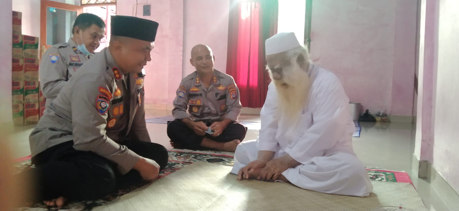 Dalam silaturahmi ini, Dirbinmas Polda Banten menyampaikan amanah bantuan sembako dari bapak Kapolda Banten berupa 4 karung beras, 4 dus sarden dan 8 dus kopi. (Bidhumas)