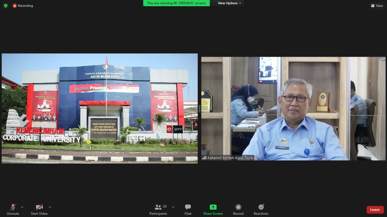 Dalam Kegiatan Penyusunan Rancangan Program Pembentukan Peraturan Daerah di Lingkungan Pemerintah Kota Tangerang Selatan Tahun 2022, Kepala Kantor Wilayah Agus Toyib berkesempatan menjadi narasumber dengan memberikan materi mengenai Urgensi Penyusunan Naskah Akademik Dalam Proses Pembentukan Peraturan Daerah yang dilaksanakan secara virtual melalui aplikasi zoom meeting, Selasa (02/11).