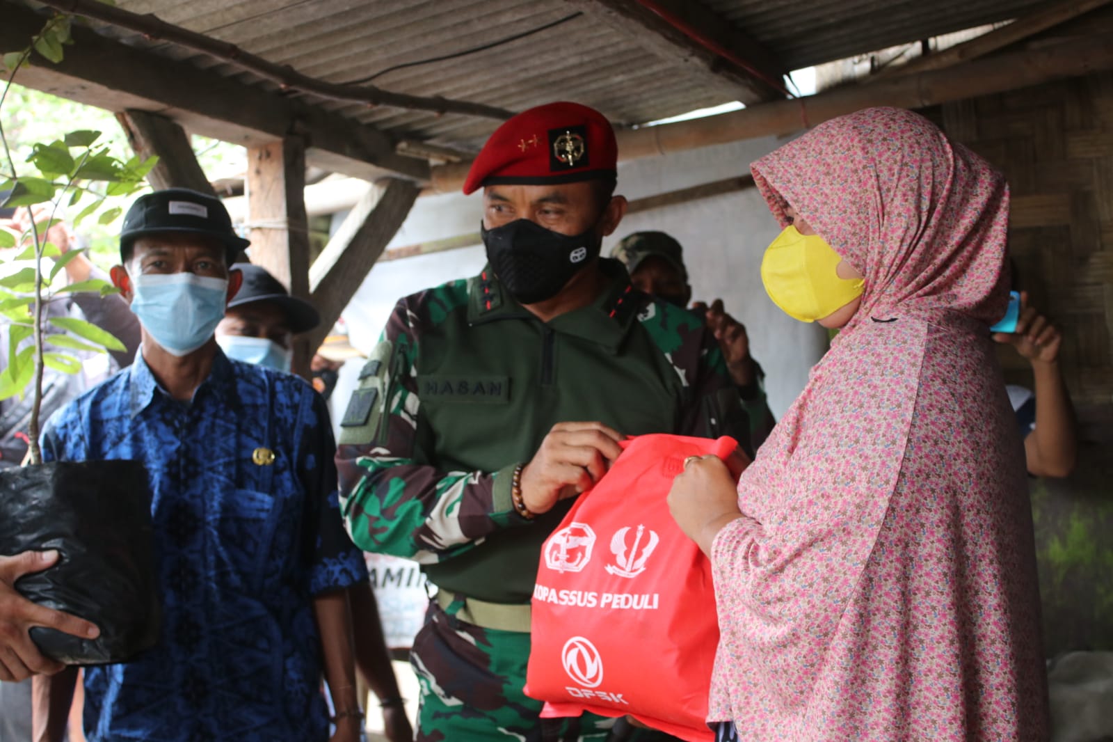SERANG – Grup 1 Kopassus menggelar acara Kopassus Peduli dengan beberapa agenda yaitu Serbuan Vaksinasi, membagikan sembako serta menanam mangrove. Kegiatan tersebut dihadiri oleh Komandan Jendral Komando Pasukan Khusus Mayjen TNI Mohamad Hasan serta unsur pemerintah.