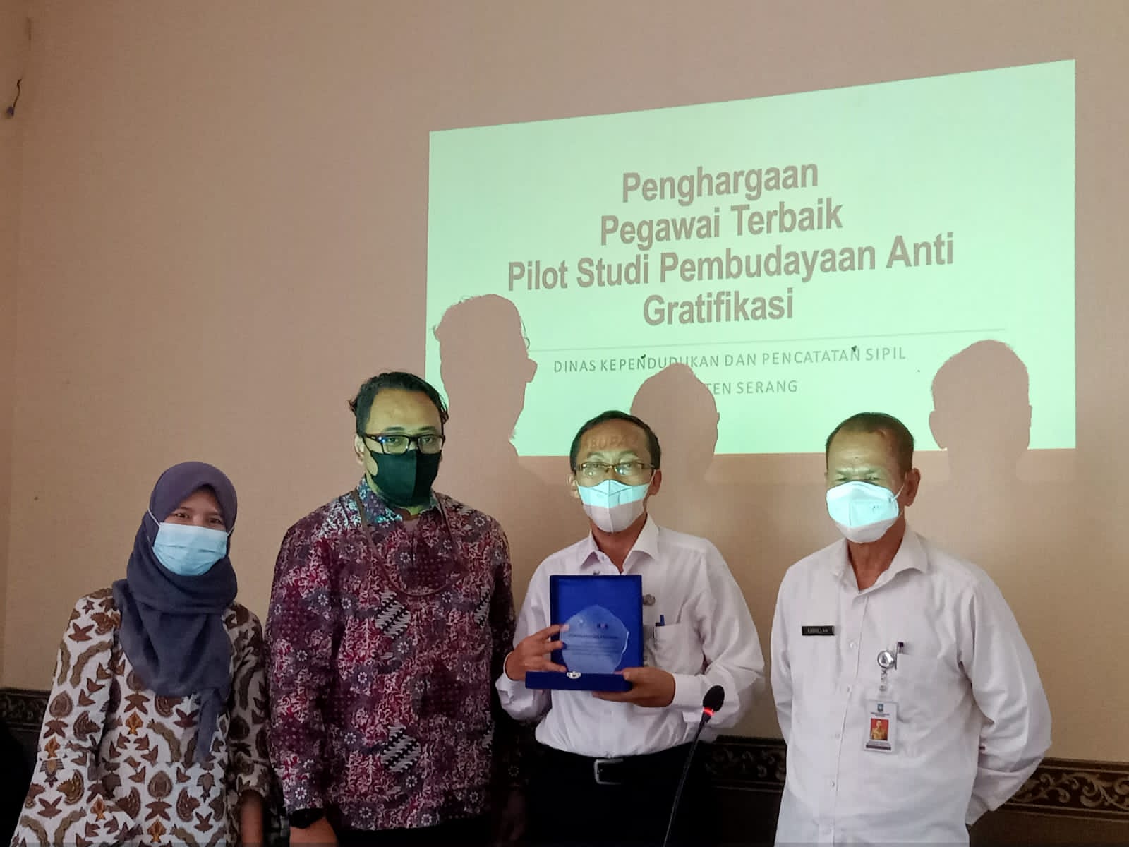 KAB. SERANG (suarasiber.co.id) – Direktorat Gratifikasi dan Pelayanan Publik Komisi Pemberantasan Korupsi (KPK) bekerjasama dengan Lembaga Demografi FEB UI, memilih Dinas Kependudukan dan Catatan Sipil (Disdukcapil) Kabupaten Serang untuk Pilot Studi Pembudayaan Anti Gratifikasi. Selain menjadi percontohan, KPK juga memberikan penghargaan kepada pegawai terbaik Pilot Studi Pembudayaan Anti Gratifikasi.