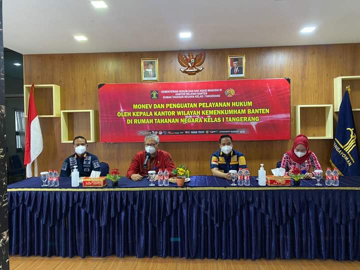 Panitia Pengawas Bantuan Hukum Kanwil Kemenkumham Banten yang dipimpin oleh Kepala Kantor Wilayah Agus Toyib didampingi Kepala Divisi Pelayanan Hukum dan HAM Andi Taletting Langi dan Kepala Bidang Hukum Septi Erni melakukan monitoring dan evaluasi terhadap Pelaksanaan Bantuan Hukum di Rumah Tahanan Kelas I Tangerang, Kamis (18/11/2021).