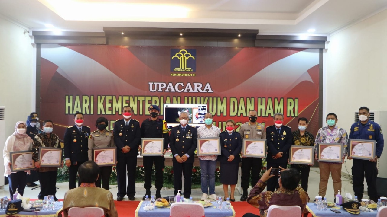 Penghargaan diserahkan langsung oleh Kepala Kantor Wilayah Kementerian Hukum dan HAM Banten, Agus Toyib yang didampingi oleh Kepala Divisi Administrasi, Novita Ilmaris, Kepala Divisi Pemasyarakatan, Nirhono Jatmokoadi, Kepala Divisi Pelayanan Hukum dan HAM, Andi Taletting Langi dan Kepala Divisi Keimigrasian, Ahmad Firmansyah dalam kegiatan Anugerah dan Syukuran Hari Dharma Karyadhika Tahun 2021 di Aula Lapas Kelas I Tangerang, Sabtu (30/10).