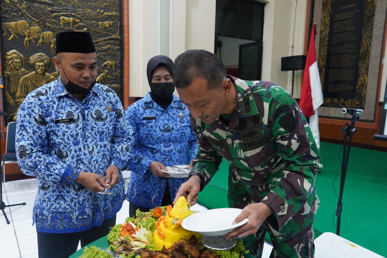 Syukuran ditandai dengan pemotongan tumpeng yang dilakukan oleh Kasi Pers Korem 064/MY dan diserahkan kepada PNS yang akan memasuki Purna Tugas serta PNS yang memasuki usia 50 tahun sesuai peringatan HUT Koprpri yang ke 50 tahun