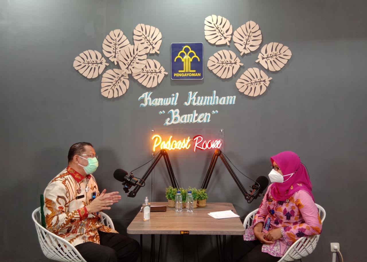 Membahas mengenai Layanan Komunikasi Masyarakat dan Sistem Informasi Pelatihan Hukum dan HAM, Kantor Wilayah Kementerian Hukum dan HAM Banten kembali menggelar corporate University mengenai Pelayanan Hukum dan HAM dengan menggunakan sarana Publikasi Hukum dan HAM (podcast), Kamis (11/11).