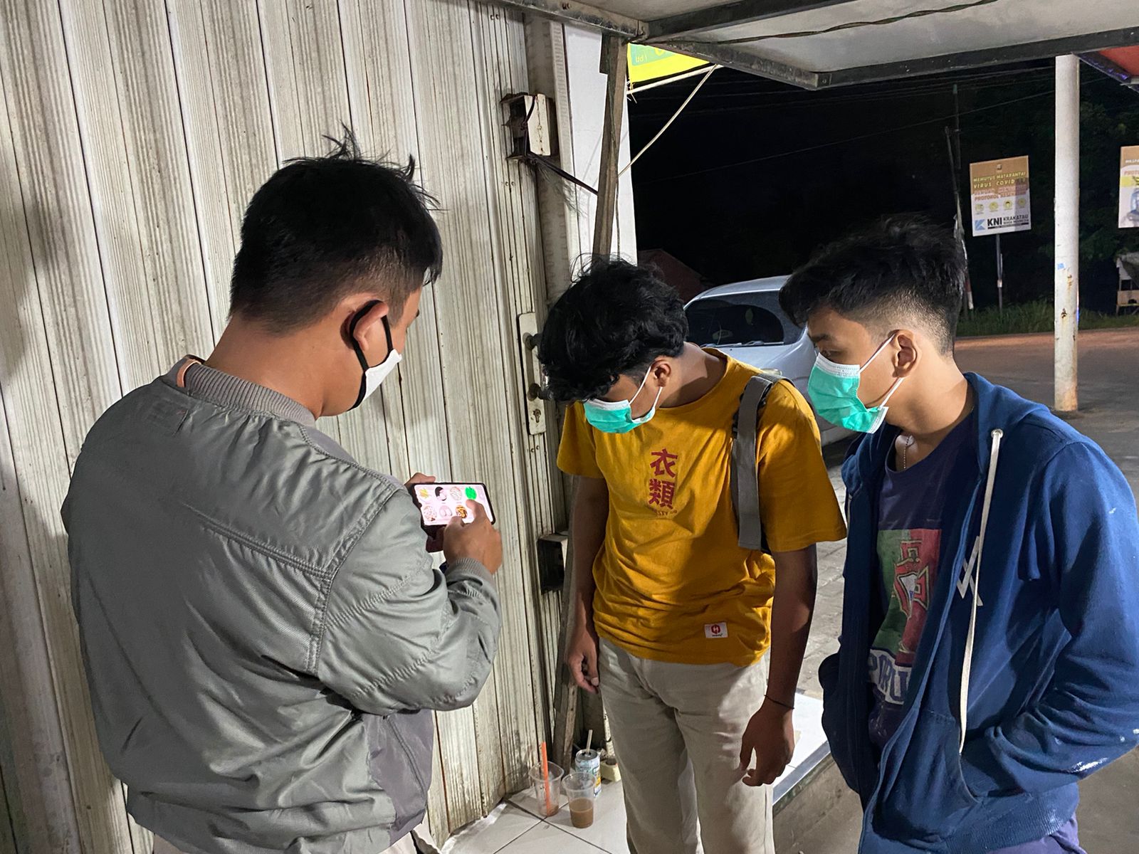 Sembari berbincang santai dengan masyarakat, personil Unit III Sat Resnarkoba Polres Serang Kota, terus membagikan masker, mengingatkan warga agar tidak lengah menerapkan prokes covid-19 hingga mengajak masyarakat untuk memerangi narkoba.