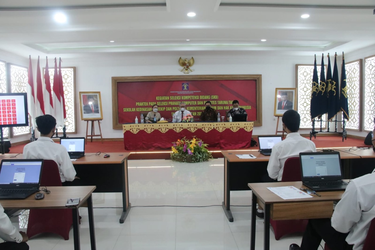 Melanjutkan rangkaian Seleksi Penerimaan Calon Taruna Akademi Ilmu Pemasyarakatan (POLTEKIP) dan Akademi Ilmu Keimigrasian (POLTEKIM) Kementerian Hukum dan HAM Tahun 2021, Kantor Wilayah Kementerian Hukum dan HAM Banten melaksanakan Psikotes bagi Calon Taruna POLTEKIP dan POLTEKIM Wilayah Banten bertempat di Aula Lantai III Wilayah Kementerian Hukum dan HAM Banten, Kamis (02/12).