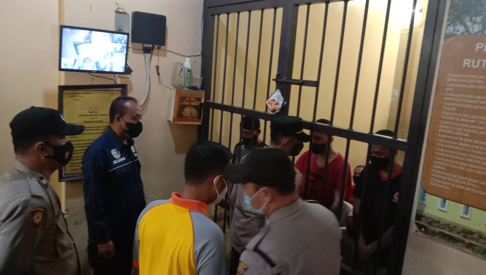 Piket perwira pengawas Polres Lebak IPTU Jajang Junaedi (Kasi Humas), didampingi IPDA Sutrisno (KA SPKT), IPDA Mustopa bersama personil jaga tahanan dan Sat Tahti melaksanakan pengecekan tahanan di Mako Polres Lebak,
