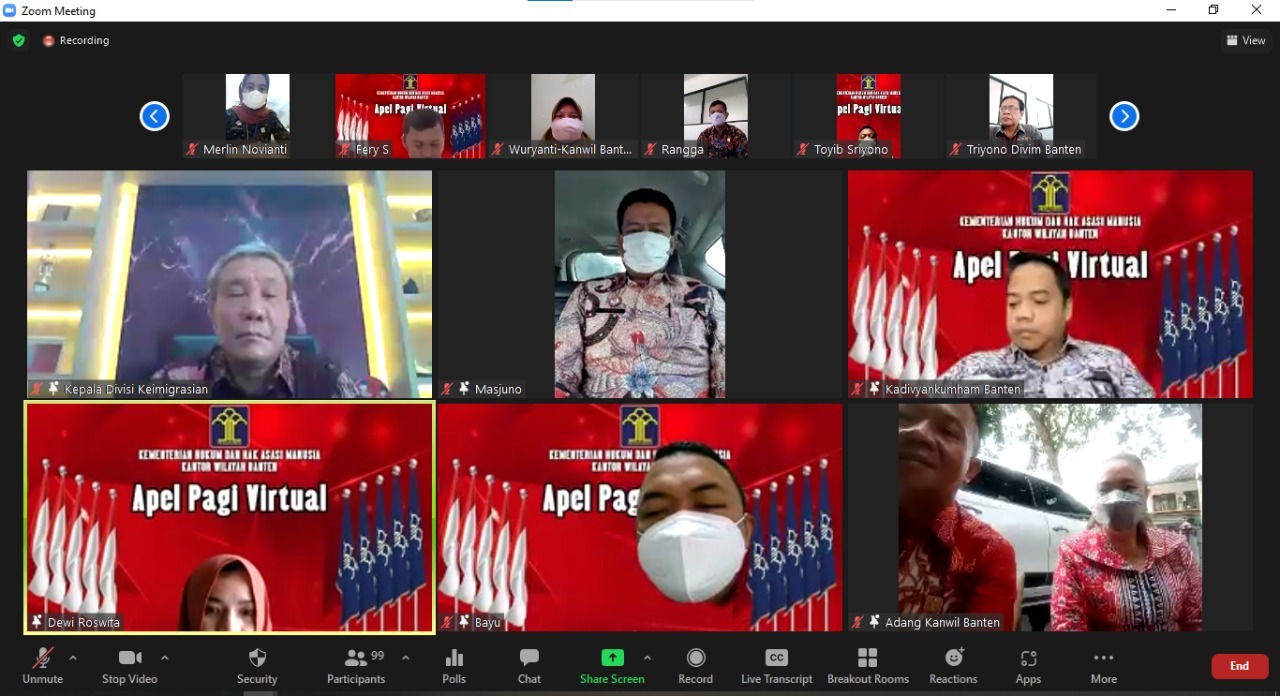 Kepala Divisi Keimigrasian Ahmad Firmansyah memimpin jalannya apel pagi pegawai yang dilaksanakan secara virtual melalui aplikasi zoom meeting, Kamis (16/12).