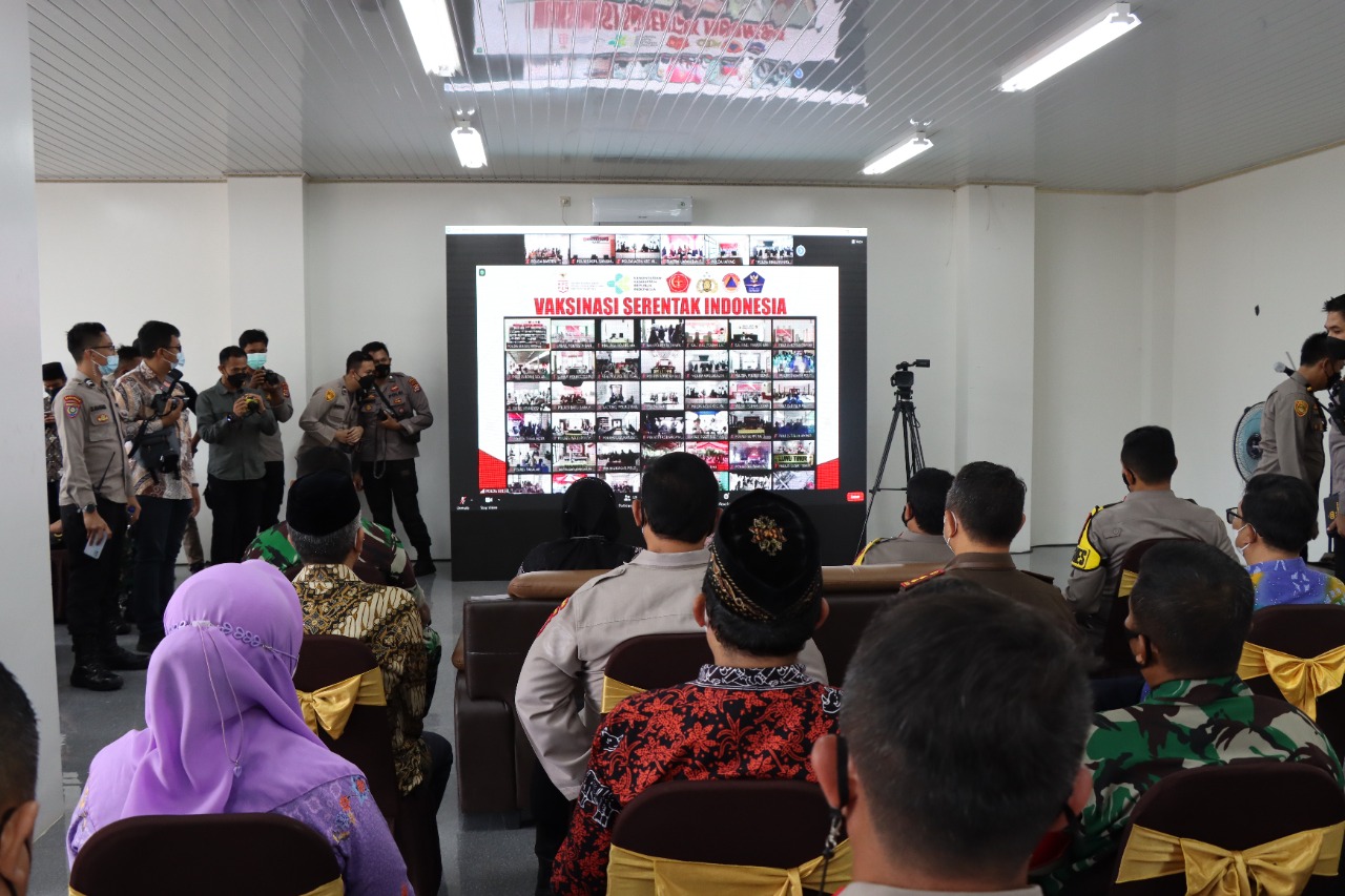 Rudy Hariyanto menjelaskan bahwa kegiatan vaksinasi massal serentak ini dilaksakan juga oleh seluruh masing-masing Polda jajaran yang dipimpin langsung oleh Kapolri Jenderal Polisi Listyo Sigit Prabowo. “Polda Banten menghadiri kegiatan vaksinasi massal serentak melalui Zoom Meeting yang dipimpin oleh Bapak Kapolri,” kata Rudy Hariyanto.