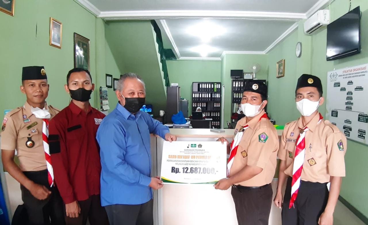 Bambang atas nama LAZIZNU mengucapkan terima kasih atas bantuan dari Pramuka SAKO Ma’arif