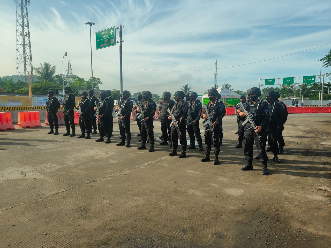 Dalam rangka kunjungan kerja Kapolri, Panglima TNI, Menko PMK, Menhub, Menkes dan Kepala BNPB ke Pelabuhan Merak, personel Batalyon B Pelopor Satbrimob Polda Banten ikuti apel gabungan pengamanan pada Rabu (22/12).