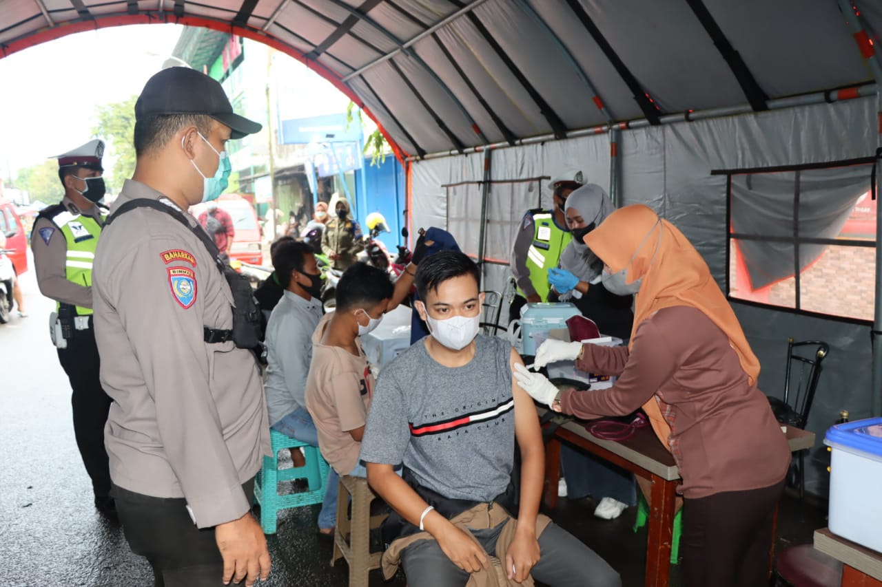 “Ya hari ini Polres Lebak melaksanakan Vaksinasi dengan sasaran para pedagang dan pengunjung pasar Rangkasbitung dan sekitarnya,” Ujar Jajang.