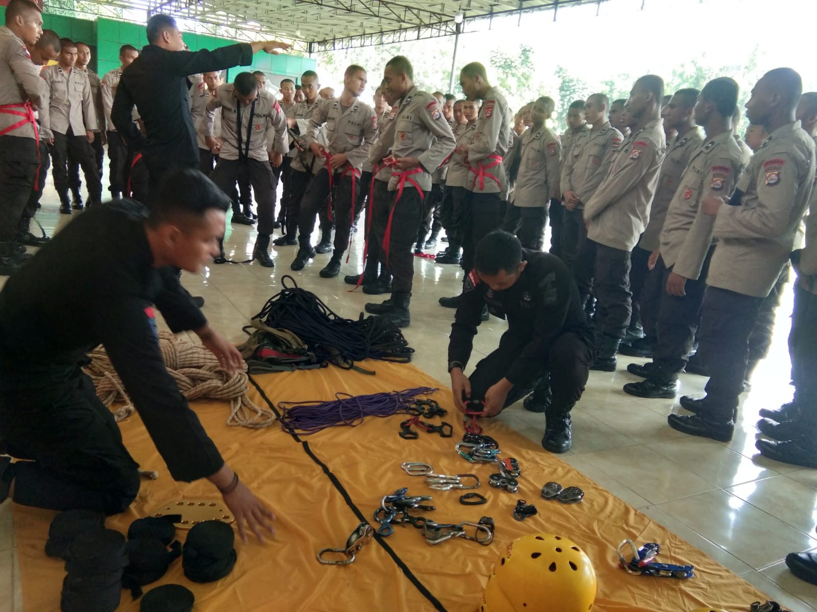 Sebanyak 60 Bintara Remaja Satbrimob Polda Banten laksanakan latihan kemampuan Search And Rescue (SAR) dan pemasangan anchor di lapangan Satbrimob Polda Banten pada Senin (27/12).