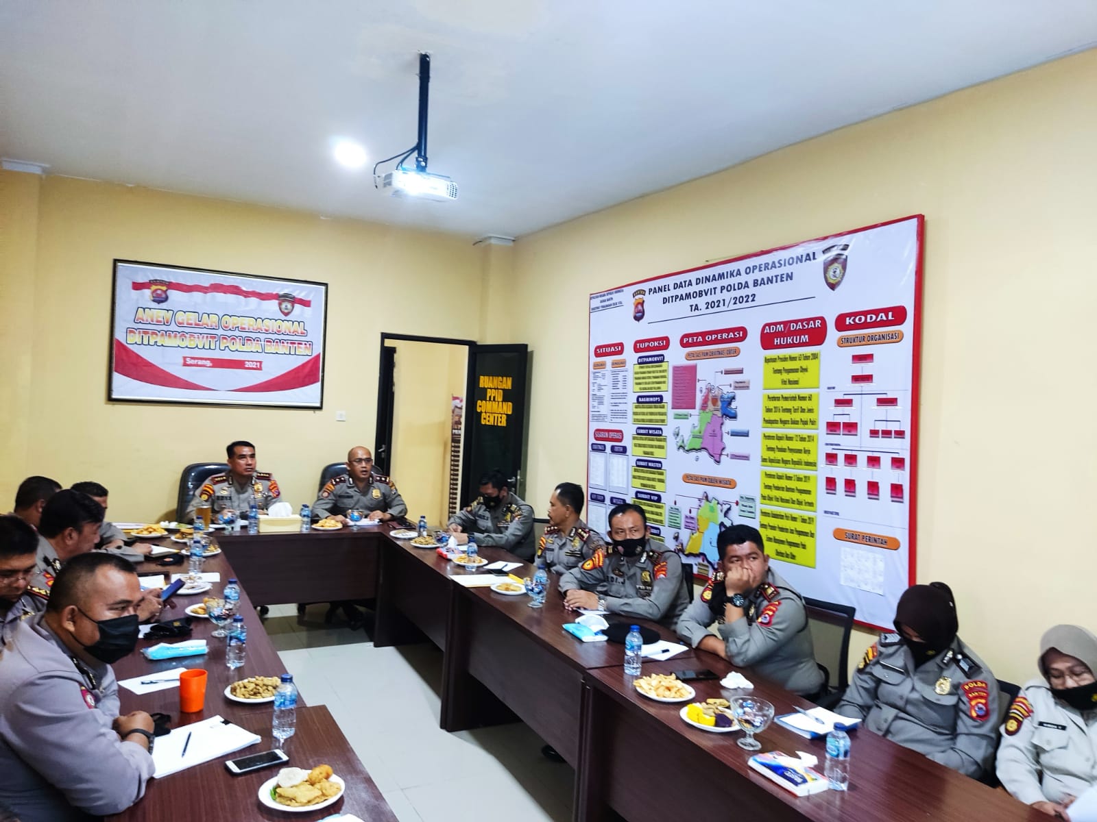 Dalam rangka mengukur kinerja dan keberhasilan kinerja jajarannya, Dirpamobvit Polda Banten pimpin pelaksanaan Analisa dan Evaluasi (Anev) Mingguan yang digelar di Ruang Command Center pada Rabu (29/12).