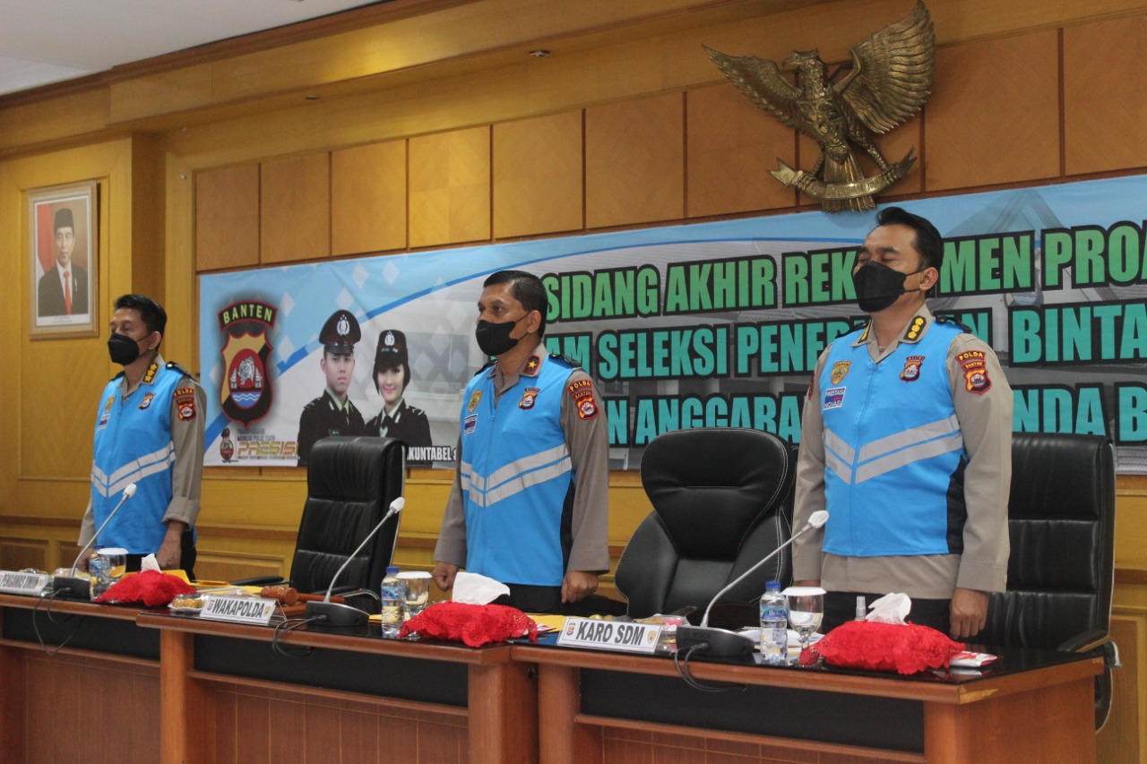 Perlu diketahui bahwa hasil dari pelaksanaan sidang akhir rekrutmen proaktif penerimaan Bintara Polri Panda Banten diperoleh hasil 14 orang lulus terpilih dari 20 orang peserta yang terdiri dari 11 orang pria dan 3 orang wanita (Bidhumas).