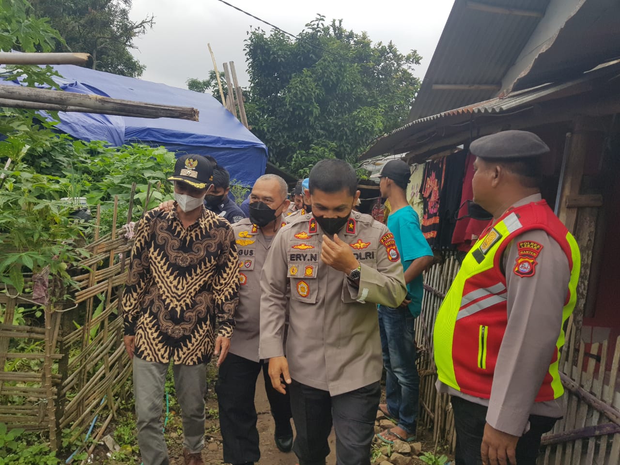 Wakapolda Banten Brigjen Pol Ery Nursatari meninjau langsung warga yang terdampak bencana gempa bumi di Kampung Padurung, Desa Lebak Sangka, Kecamatan Lebak Gedong, Kabupaten Lebak pada Sabtu (15/01).
