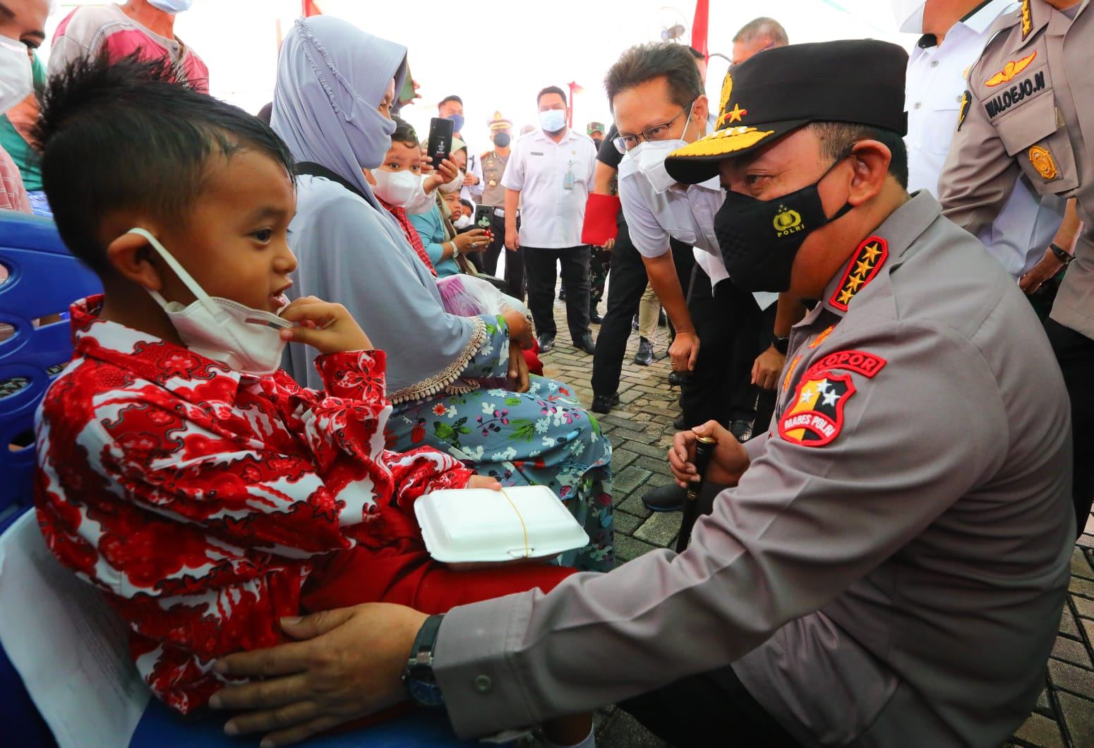 Menteri Kesehatan (Menkes) Budi Gunadi Sadikin bersama dengan Kapolri Jenderal Listyo Sigit Prabowo meninjau langsung vaksinasi serentak se-Indonesia dengan menghadiri secara langsung di Lapangan Kantor Bupati Kubu Raya, Kalimantan Barat (Kalbar), Rabu (19/1/2022).