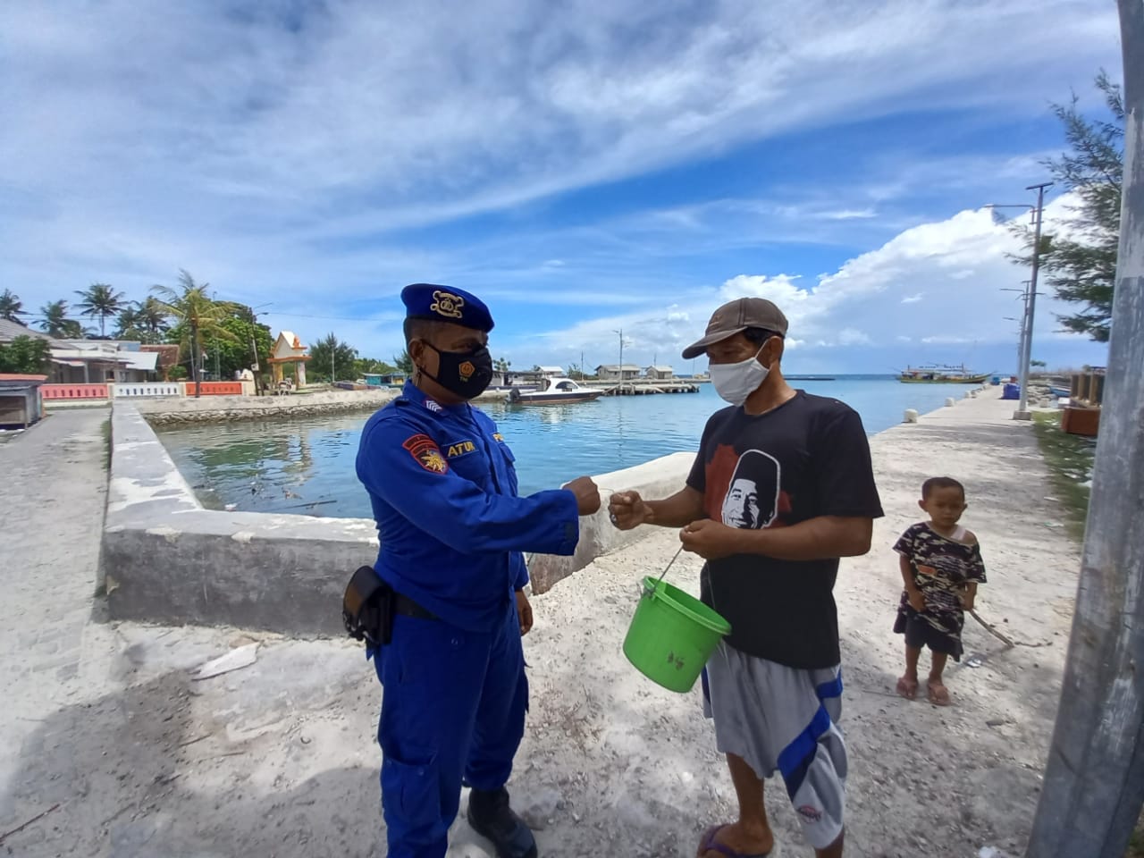 Gultom menjelaskan bahwa selain membagikan masker, personel Ditpolairud Polda Banten juga memberikan imbauan protokol kesehatan kepada masyarakat.