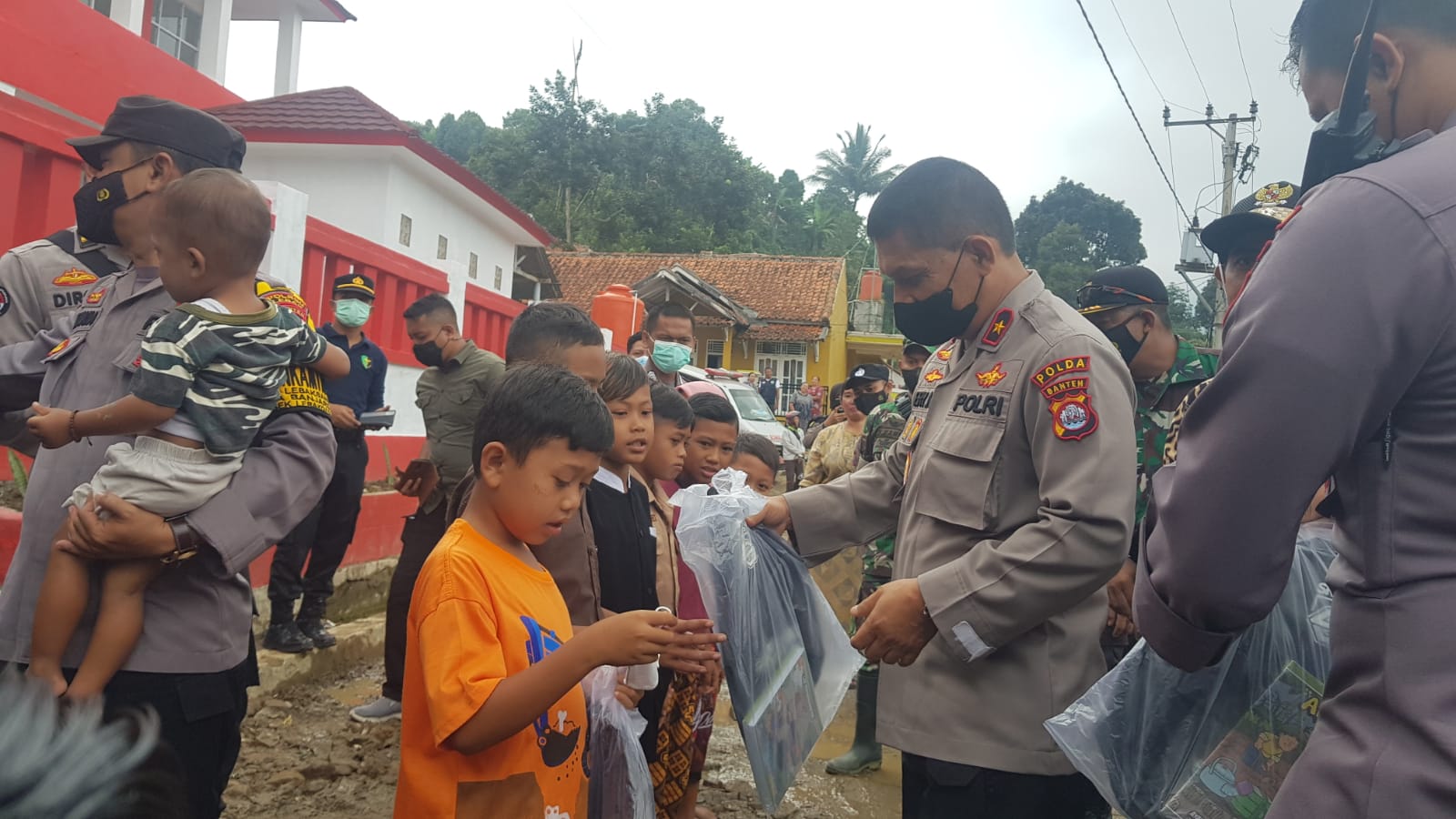 “Kami turut prihatin atas musibah yang dialami warga Lebak Sangka, Polda Banten menyalurkan bantuan perlengkapan sekolah berupa tas, pensil, pulpen, buku, dan juga masker kepada anak sekolah,” kata Ery Nursatari.