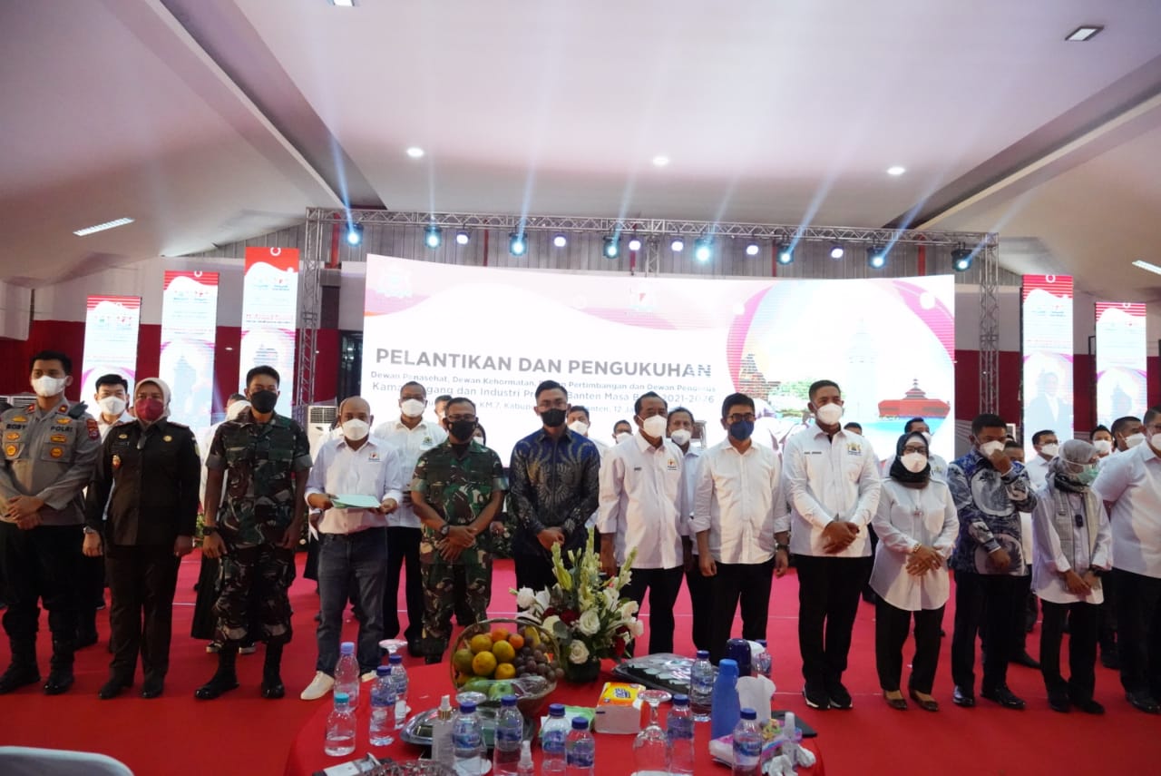 Danrem 064/MY Brigjen TNI Yunianto hadiri Pelantikan dan Pengukuhan Dewan Penasehat, Dewan Pertimbangan, Dan Dewan Pengurus Kadin Provinsi Banten massa Periode 2021-2026 bertempat di Hanggar Jayabaya Jln Rangkasbitung Pandeglang KM 17 Desa Warunggunung Kab Lebak. Rabu ( 12/01/2022 )