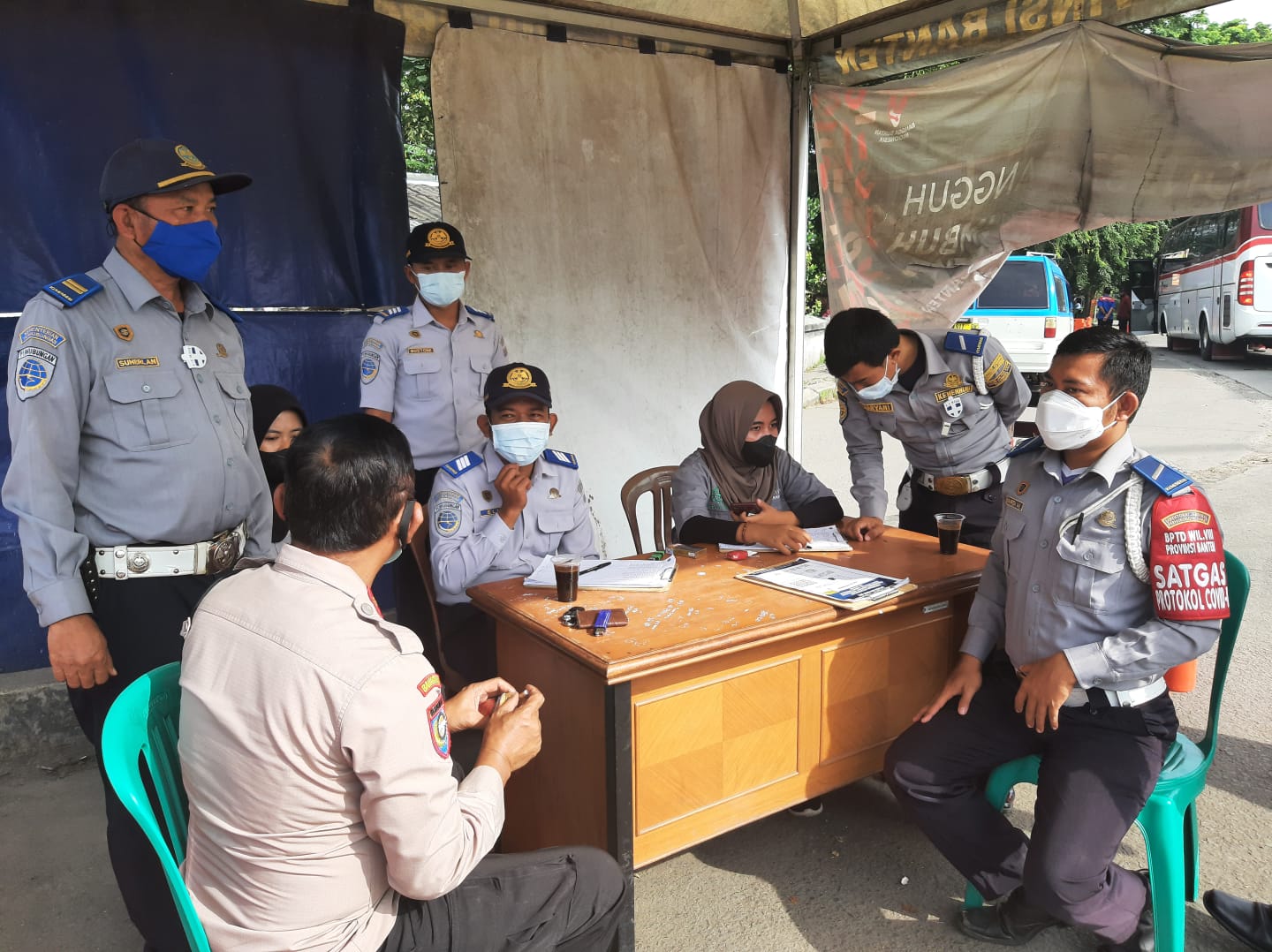Kunjungan tersebut dilakukan oleh Kasi Kordinator Pengawas Polisi Khusus (Korwaspolsus) Ditbinmas Polda Banten Kompol Suyana bersama personel Ditbinmas dengan mengunjungi petugas Dishub yang sedang bertugas di terminal Pakupatan.
