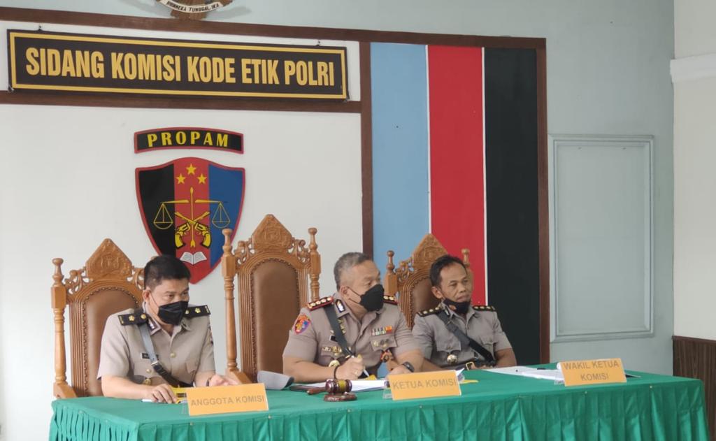 Sidang Kode Etik Profesi Polri tersebut dipimpin langsung oleh Kabid Propam Polda Banten Kombes Pol Yudho Hermanto didampingi Subbid Wabprof Bidpropam Polda Banten, penuntut dari Subbid Wabprof dan Perwira menengah (Pamen) pendamping dari Biroops Polda Banten.
