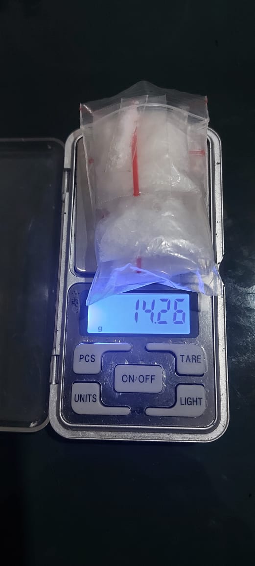 Selanjutnya Suhermanto mengatakan dari pengungkapan tersebut mengamankan barang bukti, “Personel mengamankan barang bukti berupa 1 dompet bahan kain warna putih yang didalamnya terdapat 2 bungkus plastik klip bening besar yang didalamnya terdapat kristal putih diduga narkotika jenis shabu, 4 bungkus plastik klip bening yang yang didalamnya terdapat kristal putih diduga narkotika jenis sabu, 1 buah kotak plastik bening yang didalamnya terdapat 5 bungkus plastik klip bening yang didalamnya terdapat kristal putih yang diduga Narkotika jenis shabu. Yang ditemukan di kantong celana sebelah kiri yang digunakan oleh tersangka, dengan berat keseluruhan Brutto 14,26 Gram,” jelas Suhermanto.