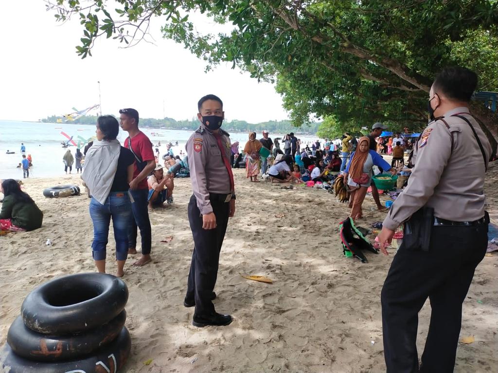 Pasca terjadinya gempa yang berpusat di daerah Sumur-Pandeglang, Ditpamobvit Polda Banten menerjunkan personel yang dipimpin Aipda Edo Stepanus untuk melakukan pengecekan pada objek wisata salah satunya kawasan Anyer pada Sabtu (15/1).