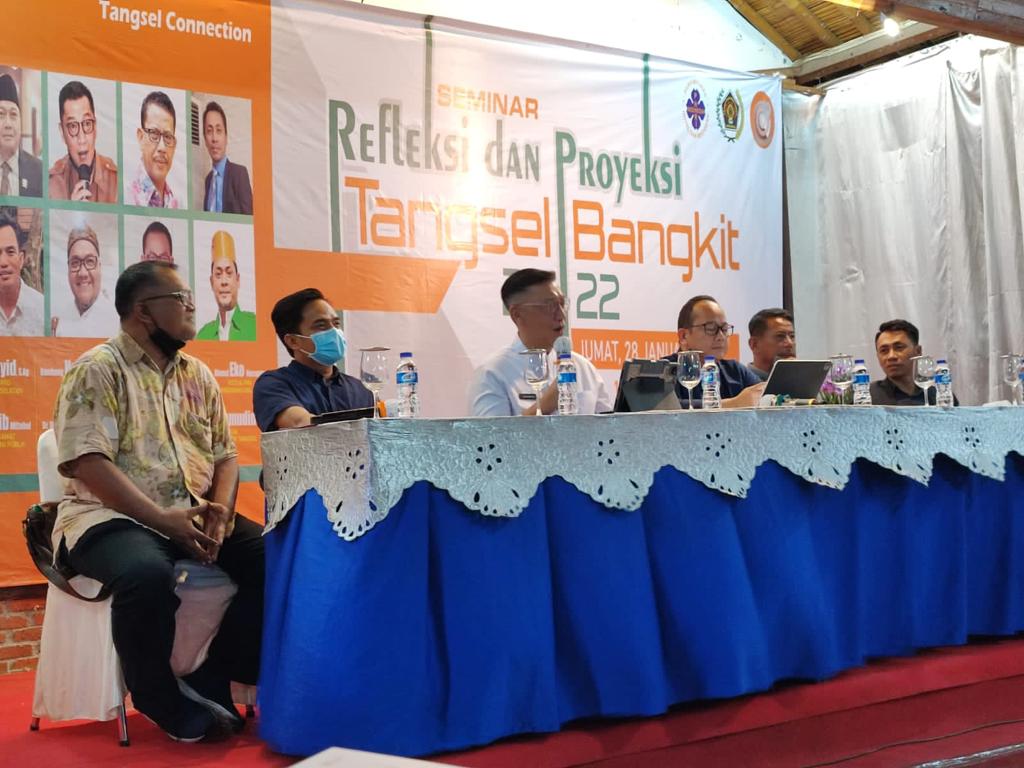 Proyeksi kebangkitan ekonomi itu menjadi topik utama pembahasan dalam seminar Refleksi dan Proyeksi Tangsel Bangkit 2022, di Resto Anggrek, Serpong, Jumat (28/1/2022).