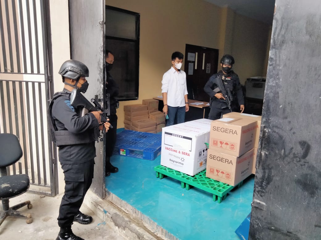 Dansat Brimob Kombes Pol Dwi Yanto Nugroho menyampaikan bahwa Satbrimob Polda Banten melakukan pengawalan kedatangan vaksin ke gudang Dinkes Provinsi Banten, “Vaksin yang tiba pukul 04.00 di gerbang tol Cikupa tersebut mendapat pengawalan ketat oleh personel Detasemen Gegana dengan persenjataan lengkap estafet dari Detasemen Gegana Satbrimob Polda Metrojaya,” ujar Dwi Yanto Nugroho.