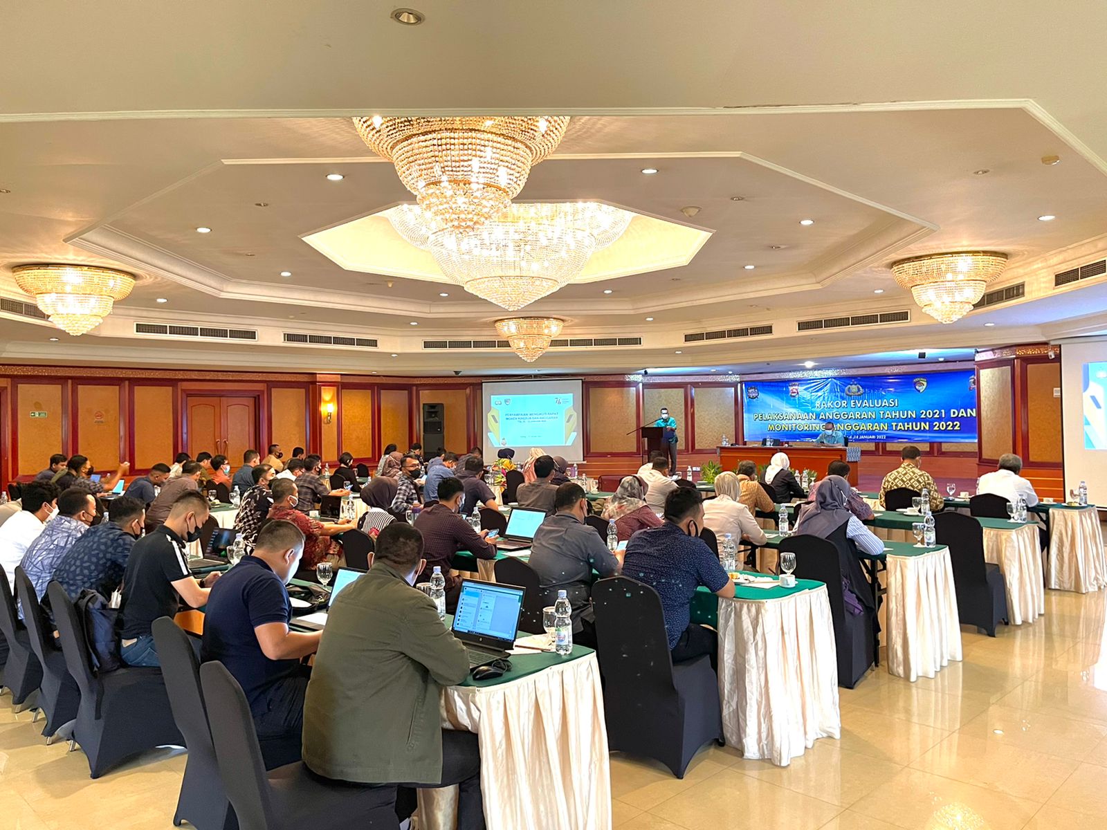 Kaurren Subbagrenmin Satbrimob Polda Banten Akp Dulhak bersama staf Subbagrenmin Satbrimob Polda Banten Brigpol Endang dan Bripda Hendra hadiri Rapat Kordinasi (Rakor) Evaluasi Pelaksanaan Anggaran Tahun 2021 dan Monitoring Anggaran Tahun 2022 di Ballroom Hotel Le-Dian, pada Kamis (13/01).
