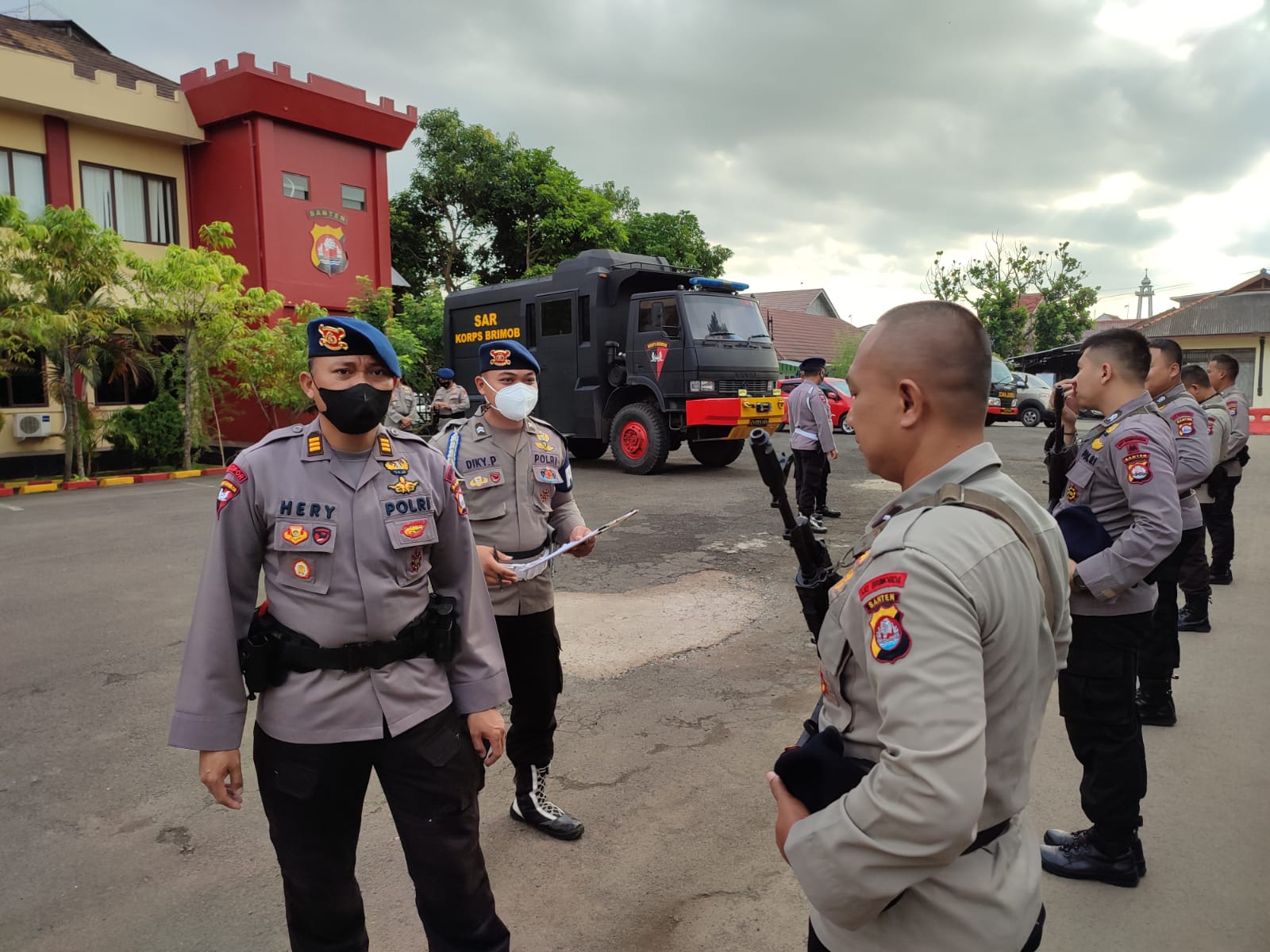 Satbrimob Polda Banten melaksanakan pemeriksaan sikap tampang, administrasi dan persenjataan personel usai melaksanakan apel pagi bertempat di Kantor Satbrimob Polda Banten pada Senin (31/01).