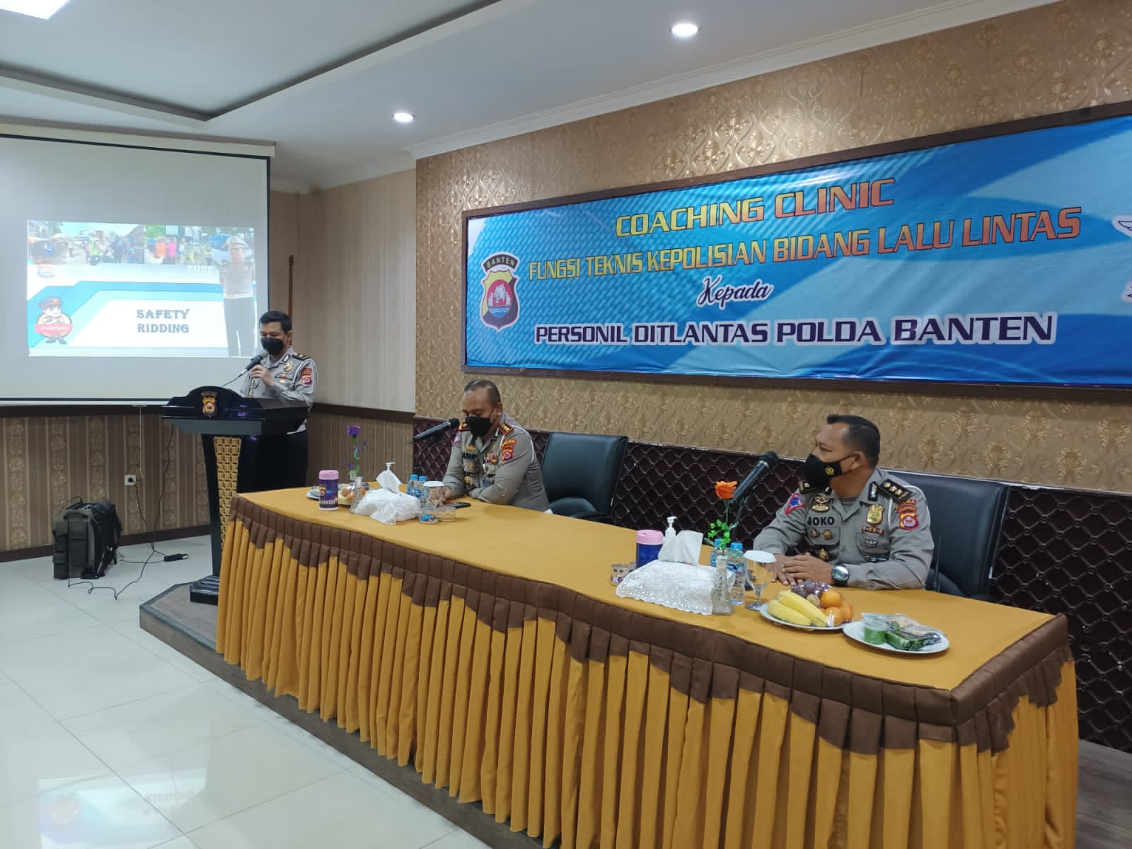 Kota Serang (suarasiber.co.id) – Wadirlantas Polda Banten AKBP Alfaris Pattiwael membuka kegiatan Coaching Clinic Fungsi Teknis Kepolisian Bidang Lalu Lintas Bertempat di Gedung Aula Ditlantas Polda Banten jalan Syekh Nawawi Al-Bantani No. 76 Kota Serang, Wakil Direktur Lalu Lintas, pada Senin (17/01).