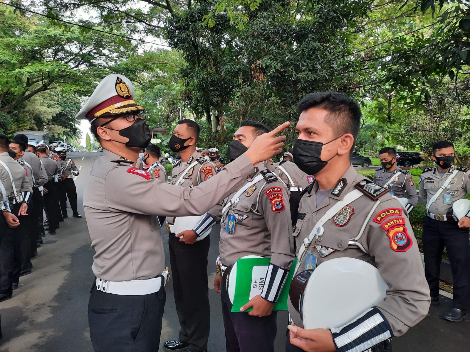 Ada yang berbeda pada pelaksanaan apel pagi Ditlantas Polda Banten. Dimana Wakil Direktur Lalu Lintas (Wadirlantas) Polda Banten setelah menerima laporan kehadiran Personil langsung melakukan Pemeriksaan kerapihan dan kelengkapan seragam dinas personel yang hadir dilapangan Merah Polda Banten pada Rabu (19/01).