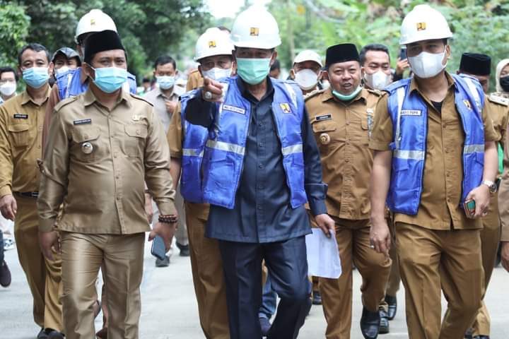 Serang, Selasa (11/1/2022). Wali Kota Serang Syafrudin bersama jajaran meninjau langsung pembangunan betonisasi di jalan Cibeo-Cilengsir, Kecamatan Curug. Jalan ini adalah perbatasan antara Kota Serang dan Kabupaten Serang.