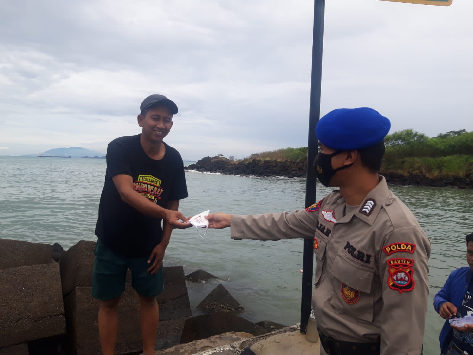 Serang (suarasiber.co.id) – Guna mencegah penyebaran Covid-19, personel Ditpolairud Polda Banten bagikan ratusan masker kepada masyarakat pesisir Anyer dan sekitarnya.