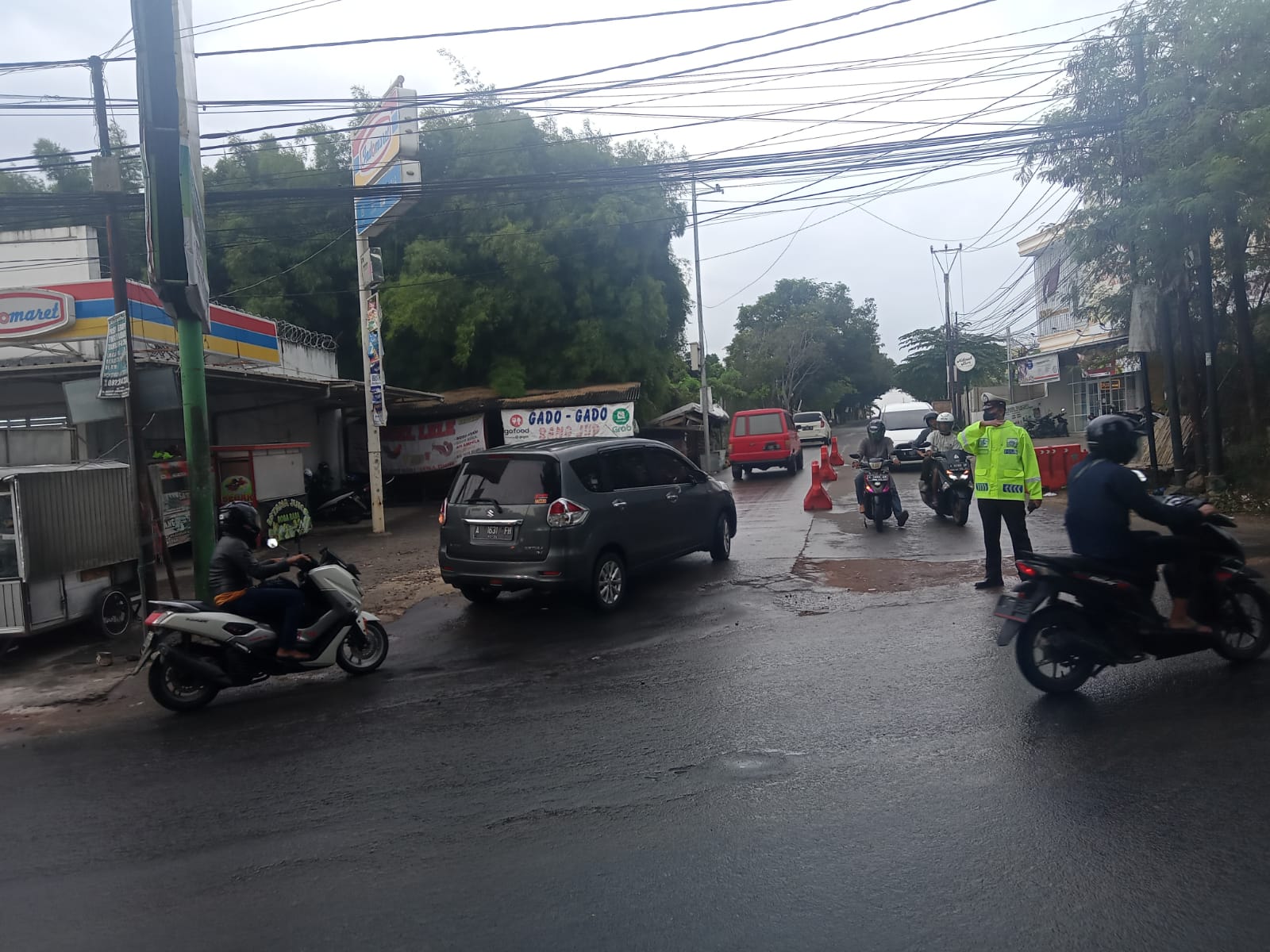 Kota Serang (suarasiber.co.id) – Personel Ditlantas Polda Banten untuk mengoptimalkan Pelayanan kepada masyarakat di Jalan Raya, melaksanakan penjagaan dan pengaturan lalu lintas (Gatur Lantas) sore hari walau di wilayah Kota Serang sedang diguyur hujan pada Kamis (17/02) sore.